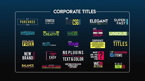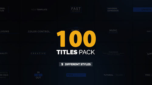 +100 Titles Pack | 9 Styles - Project for After Effects (Videohive) After Effects Version CS5.5 - CC 2015 | Resizable | 24 May 17 | No plugins | 48mb