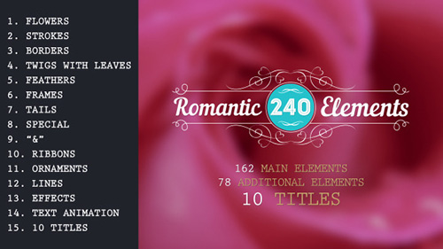 Romantic Elements & Titles - Project for After Effects (Videohive) After Effects Version CC 2014, CC, CS6 | 1920x1080 | 3 February 15 | No plugins | 45MB